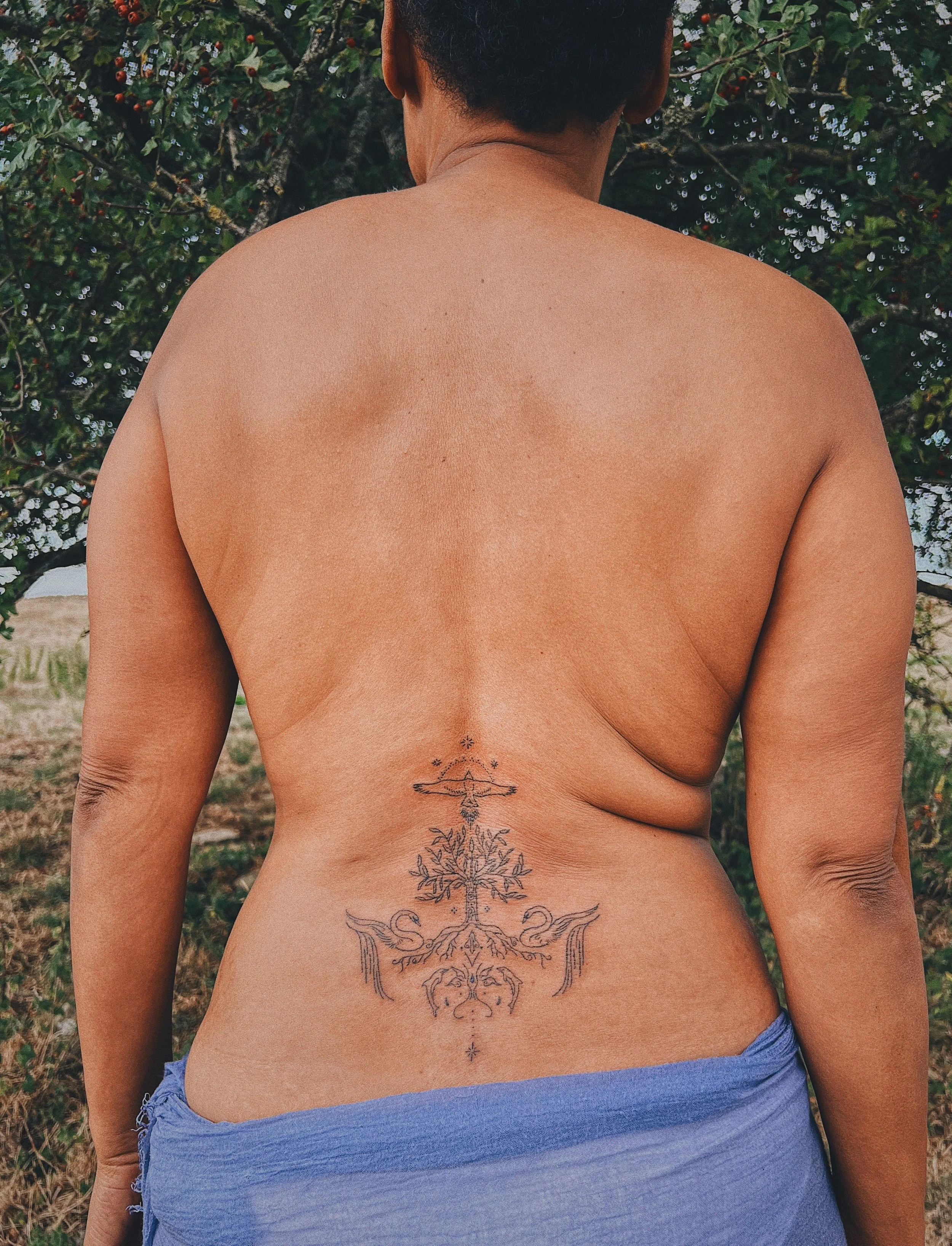 The name and modality of “Soul Tattoos” was channeled through me under a full Taurus Moon in 2016. This came after couple of years of exploring tattooing as healing along side other healing arts lineages, and divination modalities I was called to. From the moment I picked up a tattoo needle in 2014, I started having past life memories that involved this work. These memories were dripped down one by one where I eventually received the formula and ancient knowing of this medicine work. This led me deeper into my own ancient, indigenous, ancestral bloodline (The Picts, also known as the "painted people" of Alba/Britain) as well as soul lineages to uncover what has been lost. Since then, I have guided thousands around the world into the ancient alchemy of ceremonial tattooing (as students of this work and receivers), as well as training apprentices in learning this unique Soul Tattoo modality. Within my tattooing practice, I honor the traditional lineages and custodians of tattooing and its sacred and cosmic origins all over this world and beyond. I pay my respect to all ancient tattooing practices, past, present, and future, for anchoring down this modality as a tool for collective healing and empowerment. Tattooing is an ancient healing art form that has been woven through all cultures of humanity since humans arrived on this planet. Early in my career, from my work with the little people, I understood this work to be brought to humanity by the little people of the Earth. My connection to different villages of little people (fae, Kontomblé, elves, etc) informed the way that I practice and continues to teach and guide me as I grow on my soul's journey in deep devotion to the Earth and the weavers of creation. If you are curious to learn more about the origins of tattooing as an ancient healing modality, please check out my workshops and trainings on Sacred tattooing, which go deeper into the history of tattooing as a feminine art form and the many lineages that have birthed this work into form across space and many timelines.